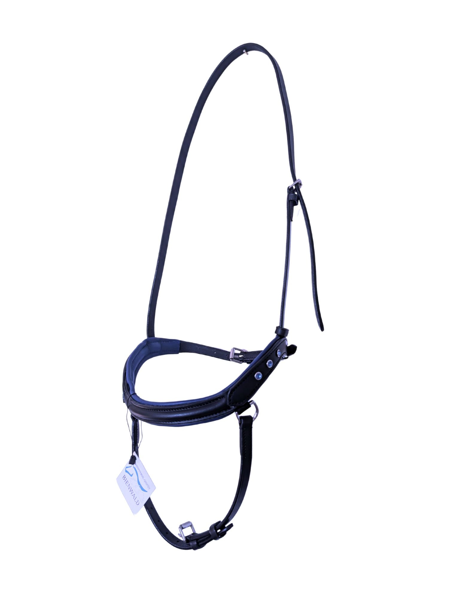 Nasenriemen aus schwarzem Leder mit anatomischen Nasenstück unterlegt mit blauem Softleder